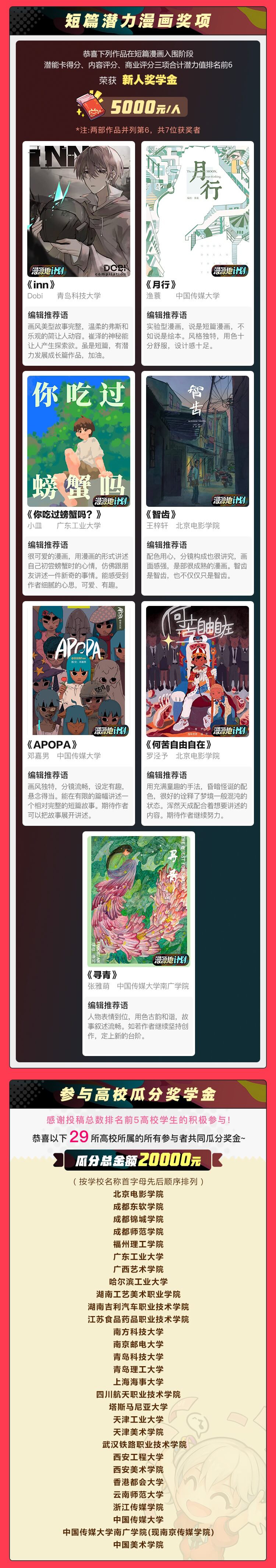 2023年,国内最大最具影响力的动漫平台哔哩哔哩(B站)首次进行“漫源地计划”高校学生潜力漫画大赛征稿,本次比赛有包括北京电影学院、中国传媒大学、中国美术学院、南京艺术学院在内60多所国内动画专业顶尖高校的学生作品共同参加。经过专家评选和全网投票,365英国上市官网在线动画专业于小博老师指导、崔译丹同学主笔的漫画《INN》以短篇漫画第一名的成绩获得BILIBILI年度奖学金,学校动画作品再次获得业界最高荣誉。