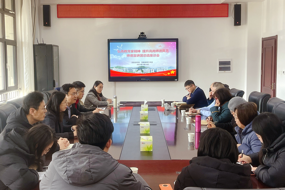 1月10日,学校师德宣讲团在崂山校区综合服务楼2015召开“弘扬教育家精神,提升高尚师德风范”2023年宣讲工作总结座谈会。党委教师工作部部长张洪坤出席会议并讲话,会议由师德宣讲团团长、马克思主义学院副教授宗芳主持。
