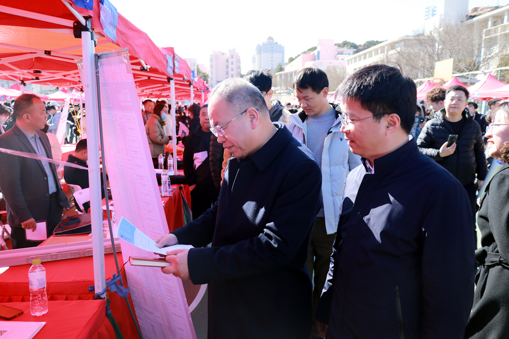 为深入落实党中央、国务院和省委、省政府“稳就业”“保就业”的决策部署和学校党委要求,为用人单位与毕业生搭建双向选择的沟通交流平台,推进毕业生高质量充分就业,3月19日下午,学校“服务区域发展”2024届毕业生春季双选会在崂山校区南苑篮球场举行。淄博市人社局党组书记、局长孙宏业,学校党委常委、副校长丁林到招聘会现场调研指导。