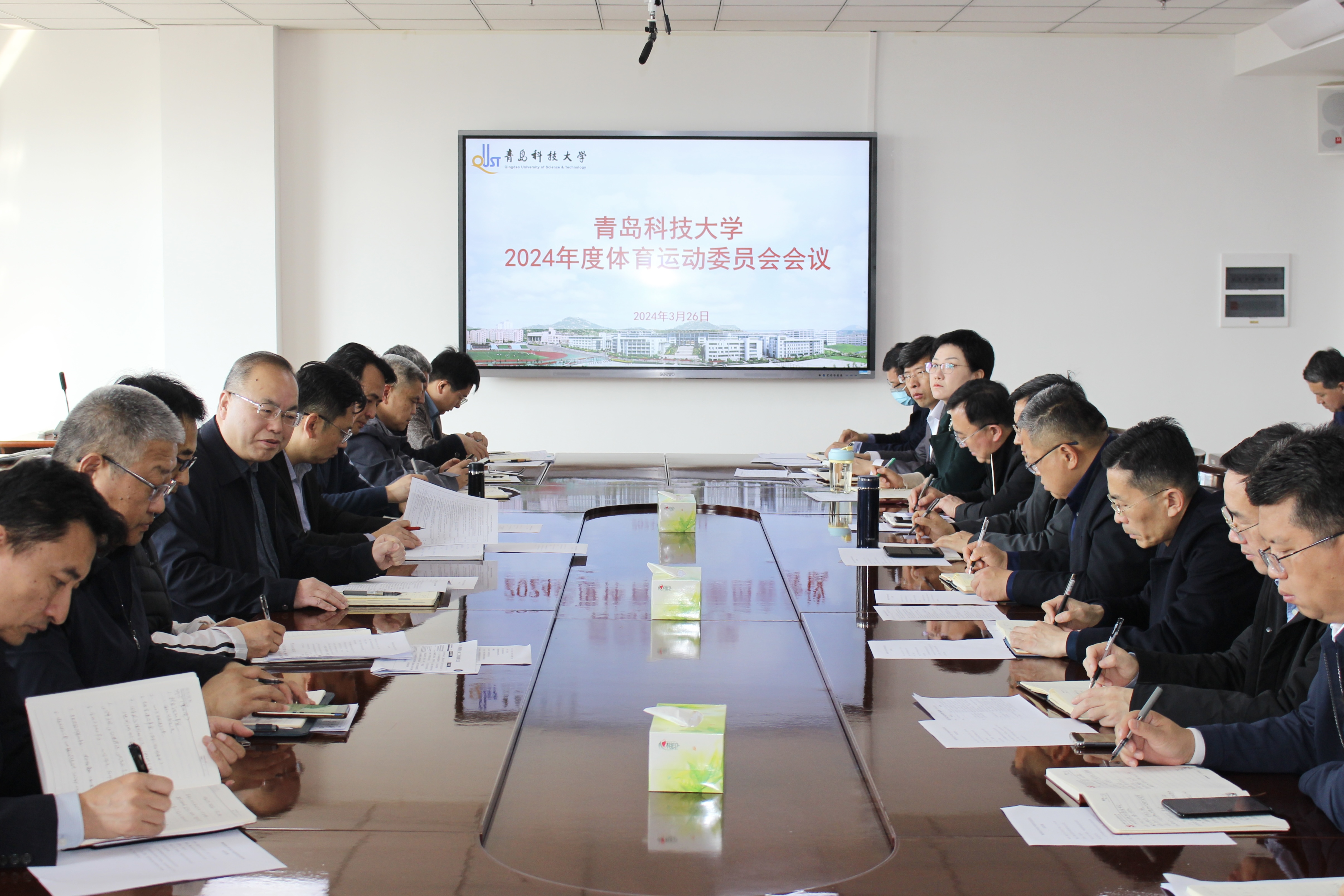 3月26日上午,2024年度学校体育运动委员会会议在崂山校区综合服务楼3015会议室召开。党委常委、副校长、学校体育运动委员会主任丁林,党委常委、宣传部部长张洪坤出席会议,学校体育运动委员会全体成员参加会议。会议由体育学院党总支书记杨中华主持。