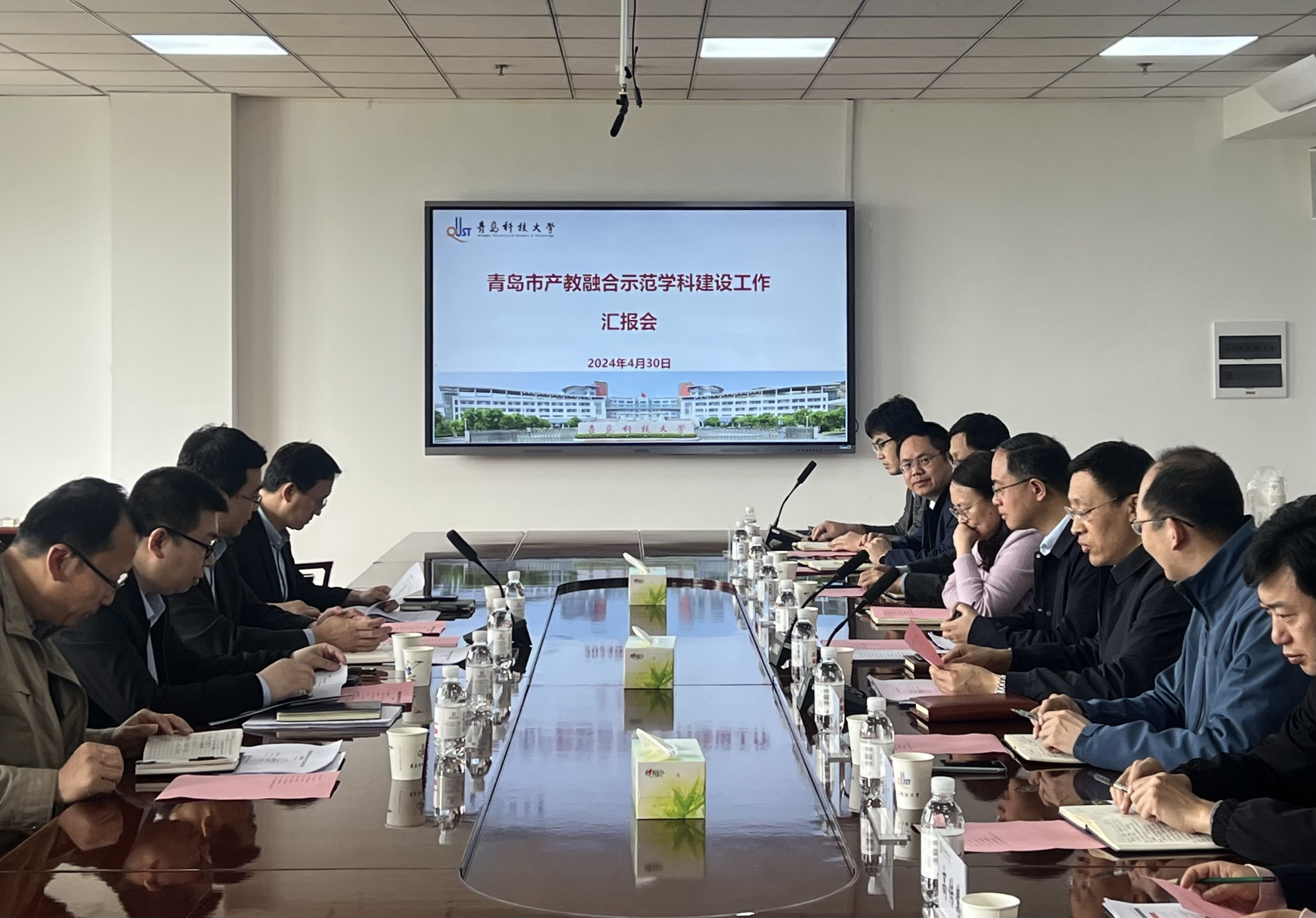 近日,青岛市教育局、科技局来校调研在青高校产教融合示范学科建设工作,党委常委、副校长罗细亮出席会议。校务委员、学科建设处处长聂广明主持会议。