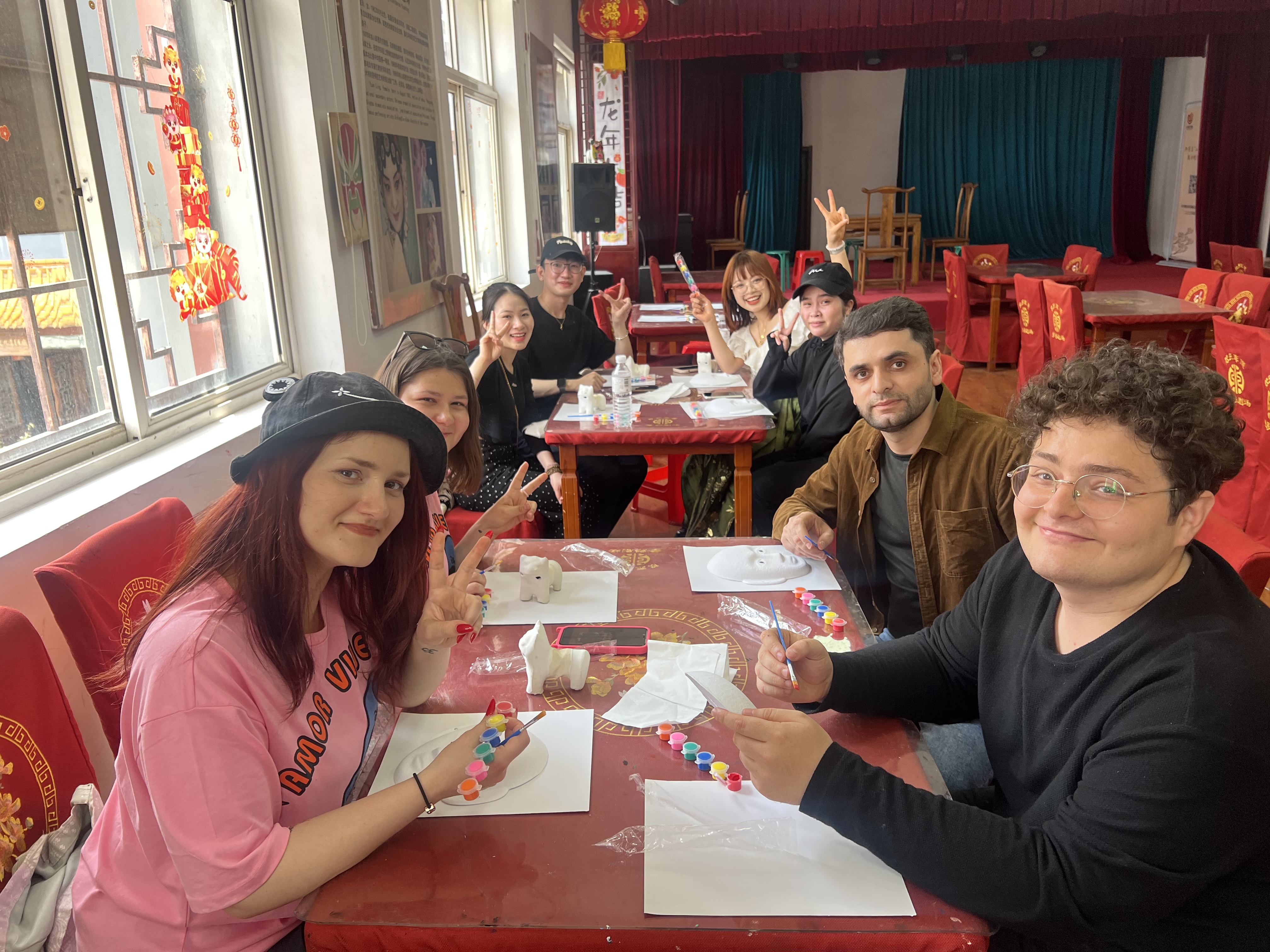 在即墨古城,留学生漫步街巷,登上城墙,了解古城内各色建筑的文化内涵,体验独具中国地域特色的古迹。在非遗文化博物馆,留学生参观了古代文物展品,沉浸在胶东悠久的文化传统之中,感受到了非遗文化的多样性和丰富性,更加深刻地认识了中国5000多年的悠久历史。来自俄罗斯、越南、摩尔多瓦等国家的留学生在民俗馆内认真制作着脸谱、泥老虎、纸伞等非遗艺术作品,体验非遗技艺中的独特魅力。来自泰国、土耳其等国家的留学生在室外相互配合,共同体验了“彩带龙”,并赢得了现场热烈的掌声。