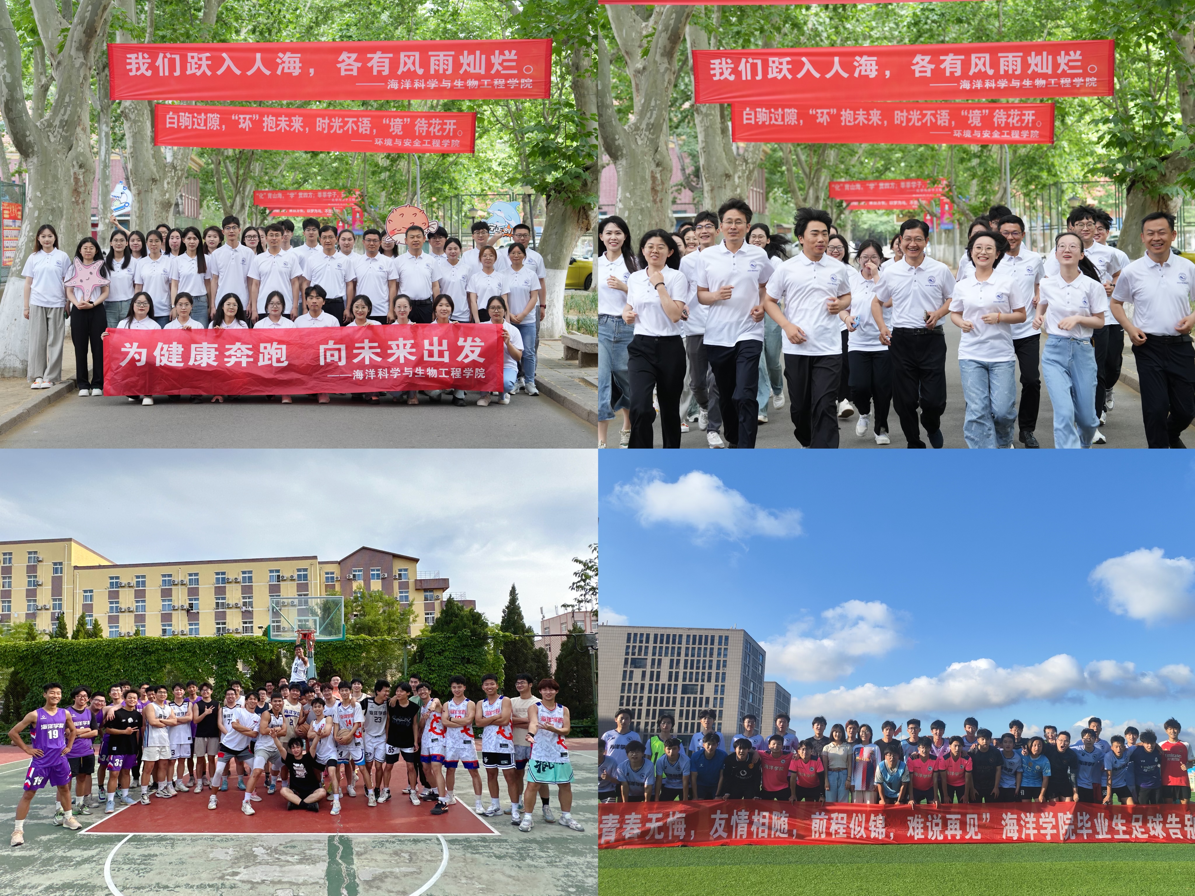 律动夏天,悦见未来。海洋学院团委开展“为健康奔跑 向未来出发”毕业跑活动,毕业生们穿着统一的纪念文化衫在网球场集合,伴随着嘹亮的发号令,师生一同从网球场出发,跑过一号行政楼、图书馆、小五四等6个校园地标打卡点,用奔跑的热情为毕业生送上祝福。同时,学院开展毕业生足球、篮球告别赛,这是一场经验的相互碰撞,球员们将活力与激情挥洒在青春的赛场上,成为每一个热爱体育运动的海院人难忘的回忆。
