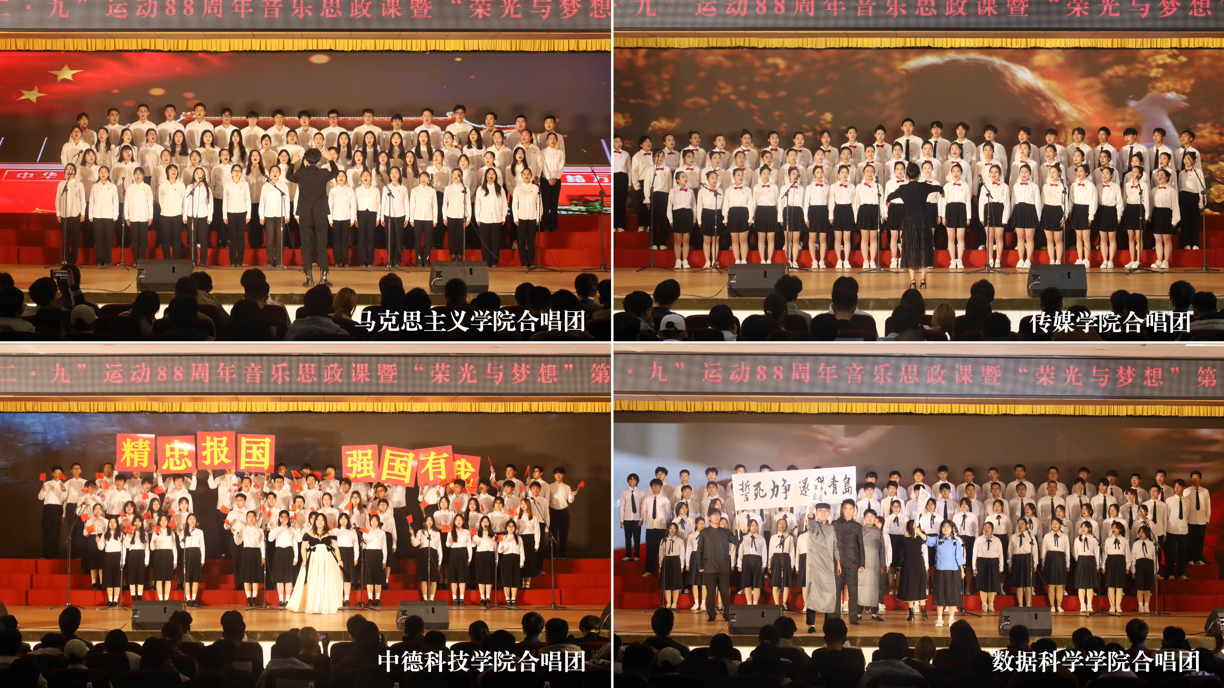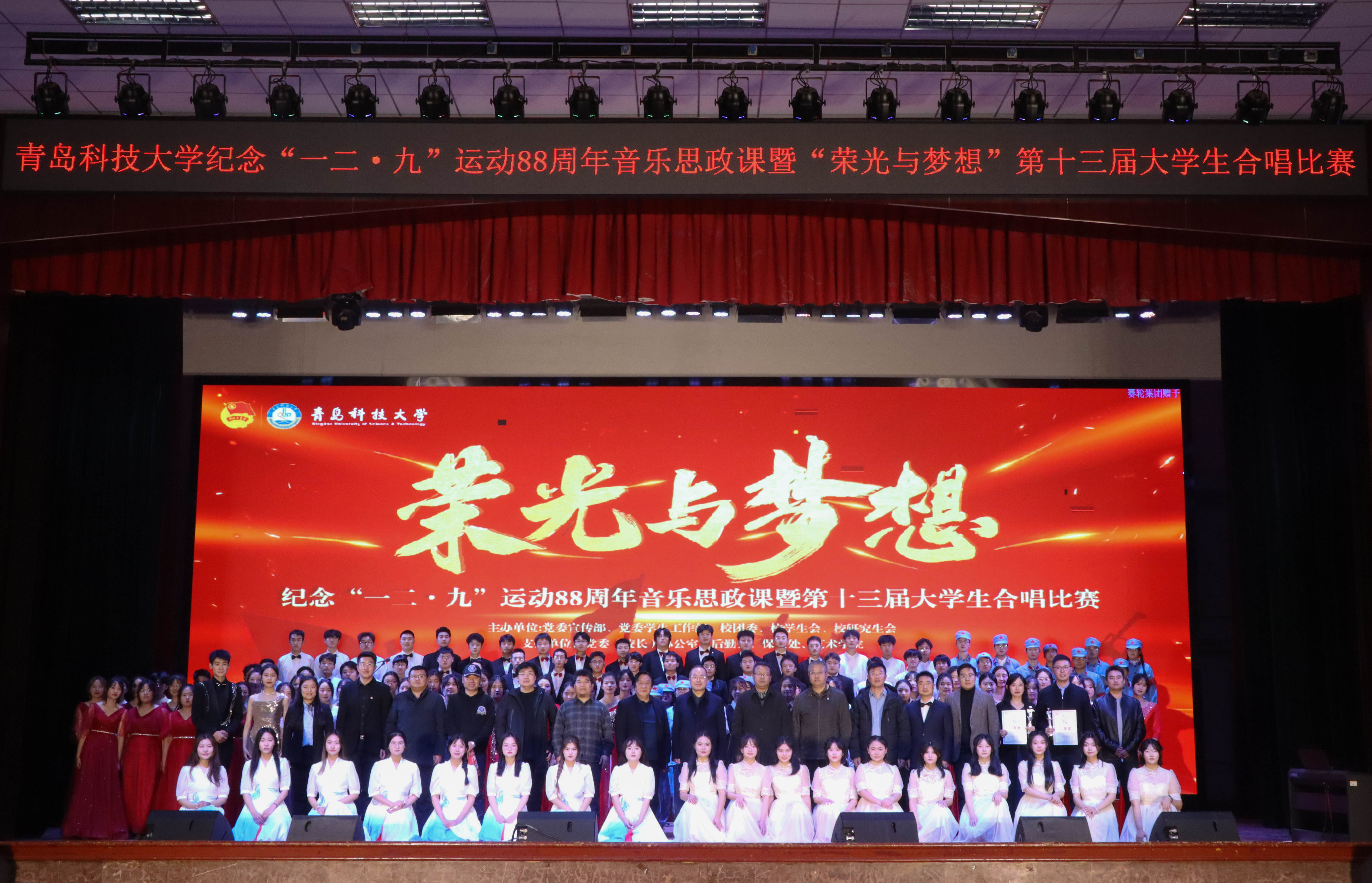 为进一步加强青年学生爱国主义教育,激发青年学生爱校荣校情怀,12月5日和9日,学校纪念“一二·九”运动88周年音乐思政课暨“荣光与梦想”第十三届大学生合唱比赛预决赛、总决赛分别在崂山校区第二报告厅、四方校区西礼堂举办。学校党委常委、副校长丁林,党委常委、宣传部部长张洪坤,党委常委、统战部部长秦姣出席活动。学校相关部门负责人、各学院相关负责人、青年学生代表2500余人参加活动。