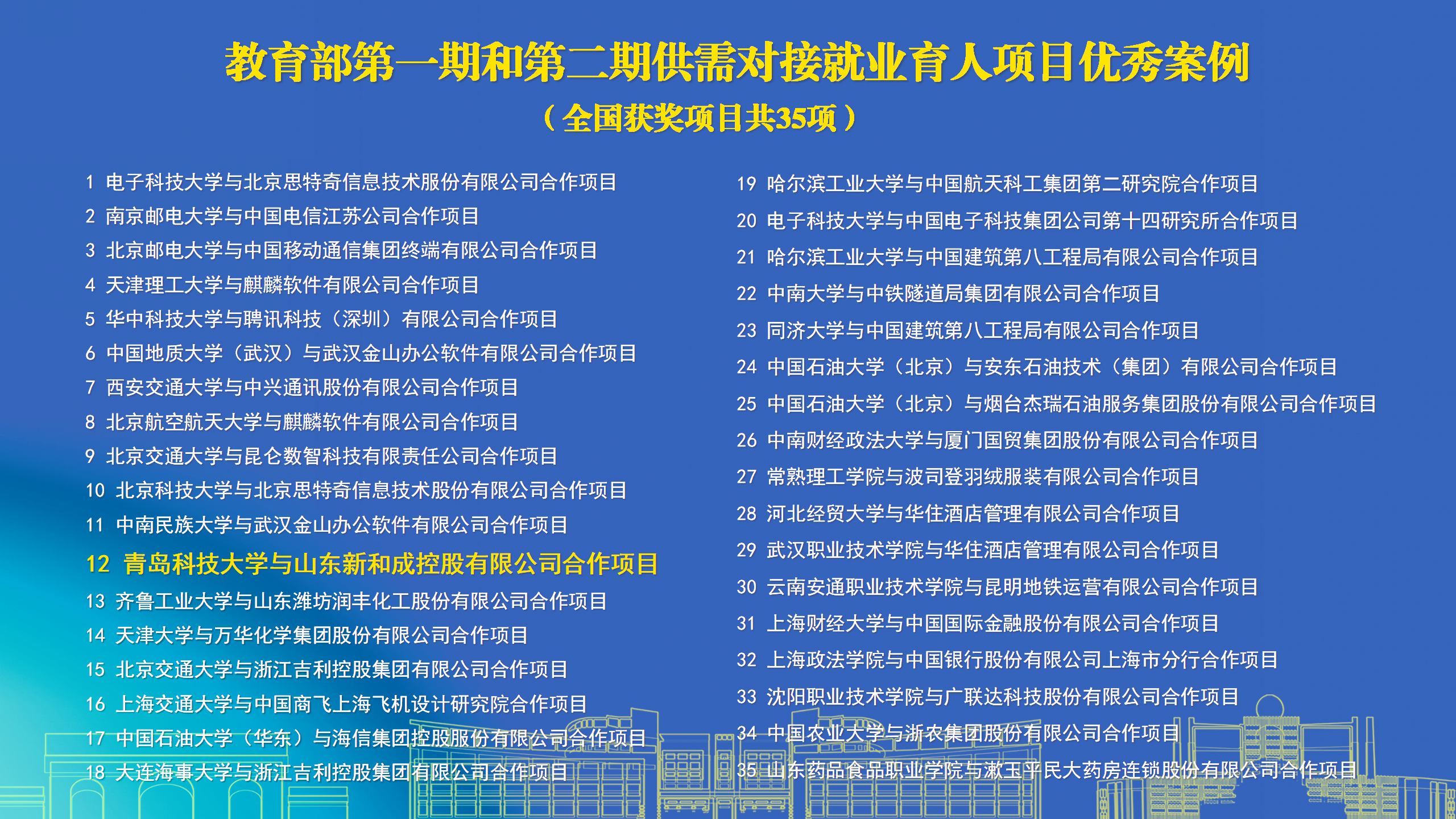 日前,教育部第三期供需对接就业育人项目交流推进会在成都电子科技大学举行,全国400余所高校、150余家企业受邀参加,会上公布教育部第一期、第二期供需对接就业育人项目优秀案例获奖名单,全国共35项。其中,365英国上市官网在线与山东新和成控股有限公司合作,由化工学院承担的项目《基于产教深度融合的化工专业实习实践基地建设模式创新与实践》(项目负责人耿赛),在全国2万余项校企合作项目中脱颖而出成功入选。