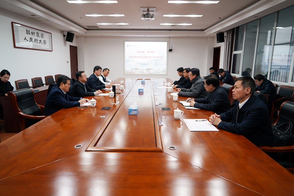 潍坊市、高密市、党委(校长)办公室、高密校区、数据科学学院等单位部门相关负责人参加调研交流。