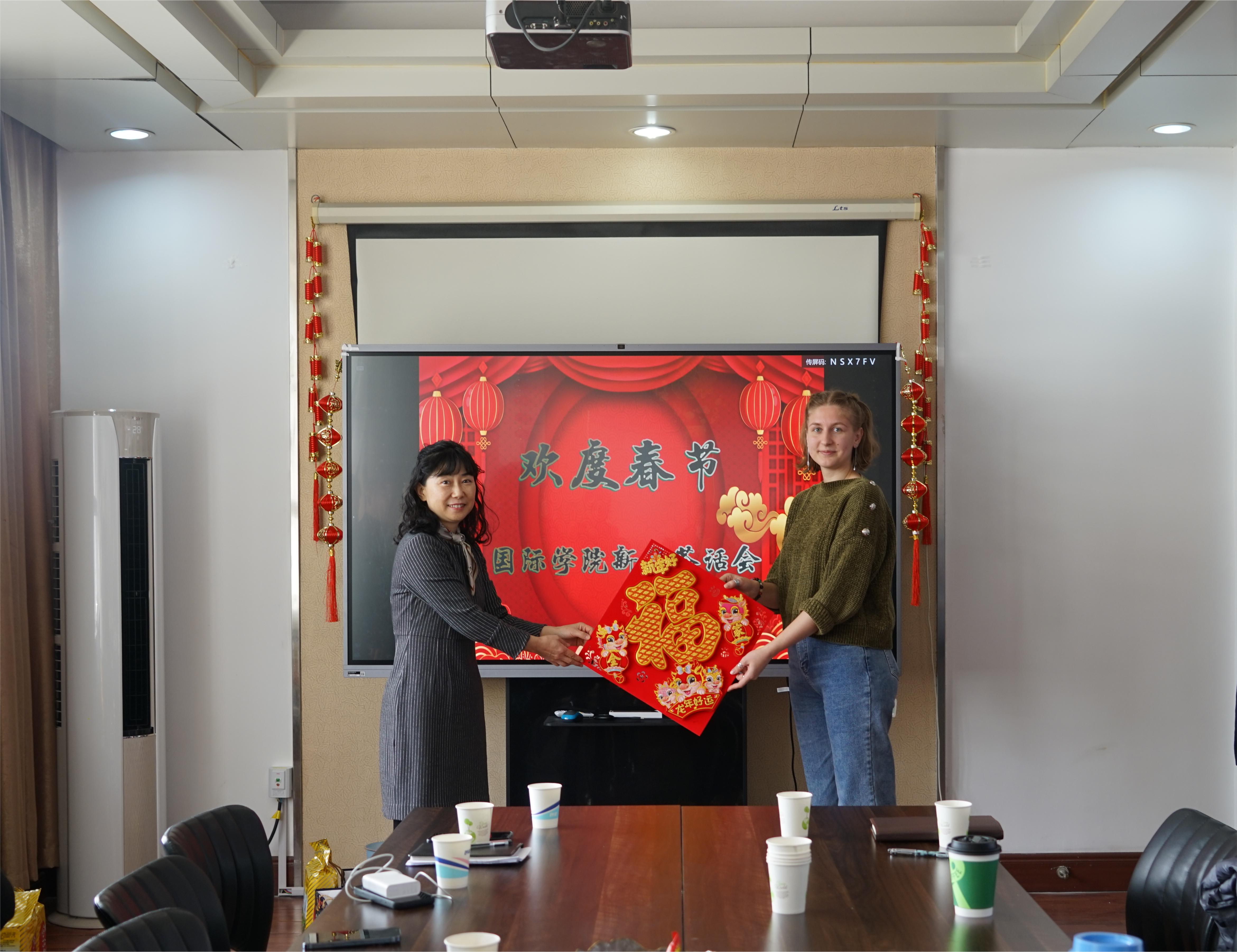 留学生们感谢学校为他们提供了良好的学习生活条件,以及寒假对他们的关心和祝福,也为学校取得的成绩感到喜悦。他们分享了对中国传统民俗文化的兴趣、对中国经济社会快速发展的观察,以及希望在学习之余多了解中国的意愿。来自俄罗斯的留学生西亚说,在科大短短一学期,她收获了很多:参加了学校的迎新晚会、参加了学校组织的“山海情缘——我的留学青岛故事”比赛并获三等奖,也因此对科大、对青岛、对中国文化有了更深入的了解。留学生们纷纷表示一定会珍惜学习机会,刻苦努力,并祝愿老师们新春快乐,祝愿青科大越来越好。