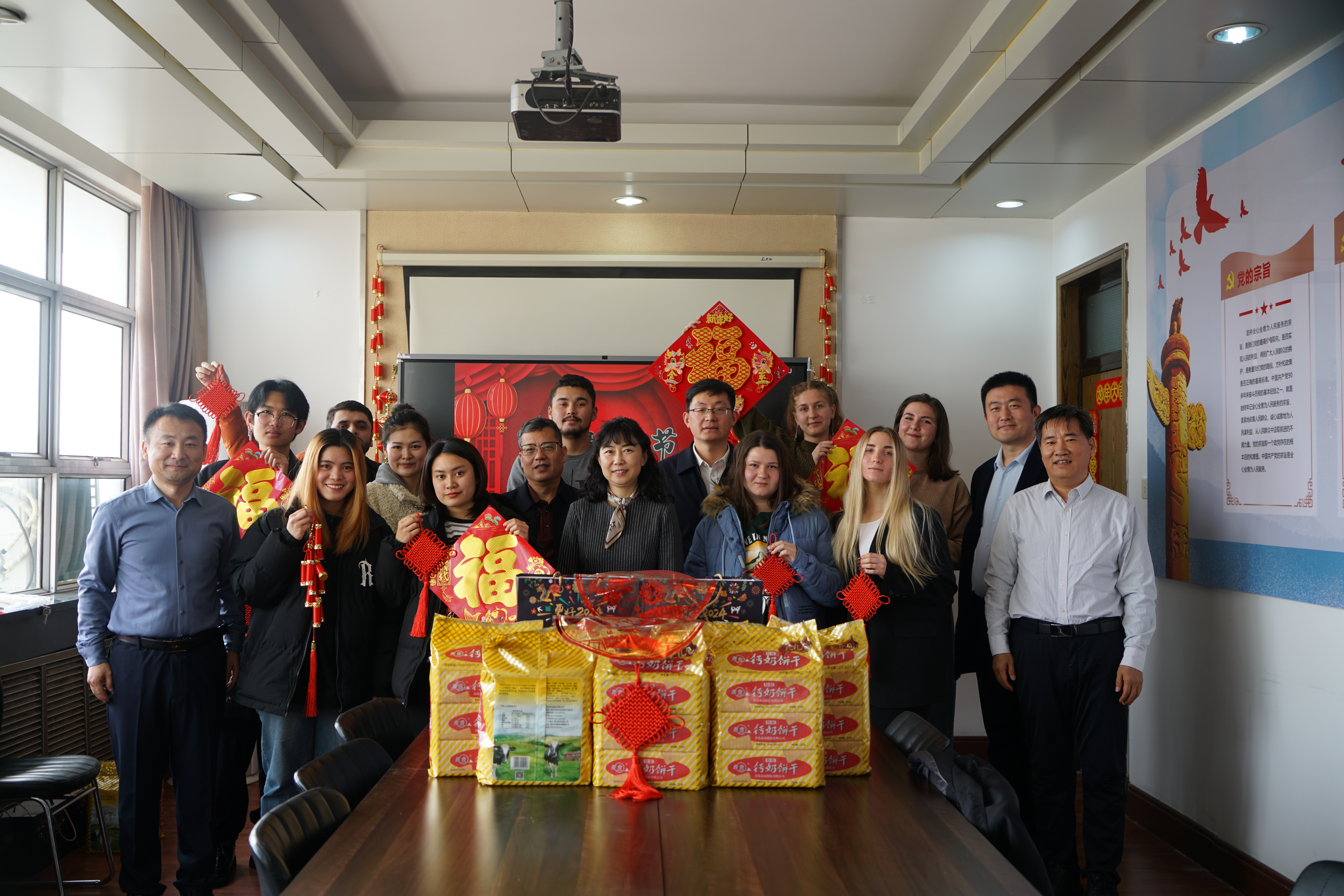 茶话会上,沈文青一行听取了留学生在中国生活、在青科大学习的感受与体会,对留学生积极进取的精神风貌表示肯定,希望他们把中国当成自己的第二故乡,把青科大当成自己的第二个家,用心感受、分享在中国的所见所闻,讲好中国故事、科大故事。同时,建议大家加深对中国文化的认识与理解,做好中外文化交流融合的桥梁和纽带;希望大家发扬青科大的优良学风,认真向学,将来更好地把在学校学到的知识和本领运用到家乡的建设发展中去。她叮嘱同学们寒假期间注重阅读,加强锻炼,保重身体。最后,沈文青祝愿同学们学业有成,龙行龘龘、前程朤朤。